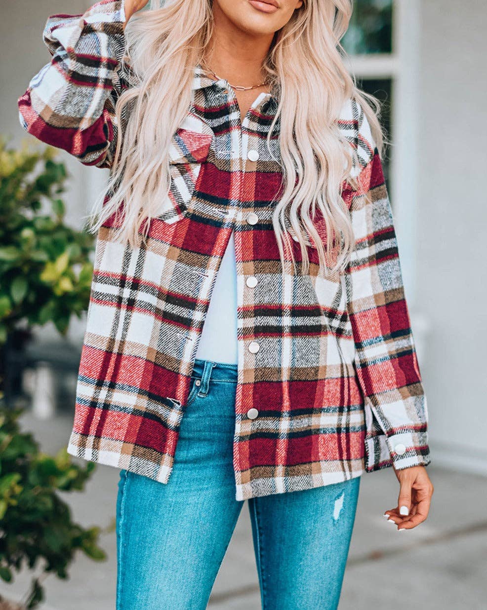 Plaid Oversized Shacket with Button Front & Large Pockets – Cozy Chic Layering Piece