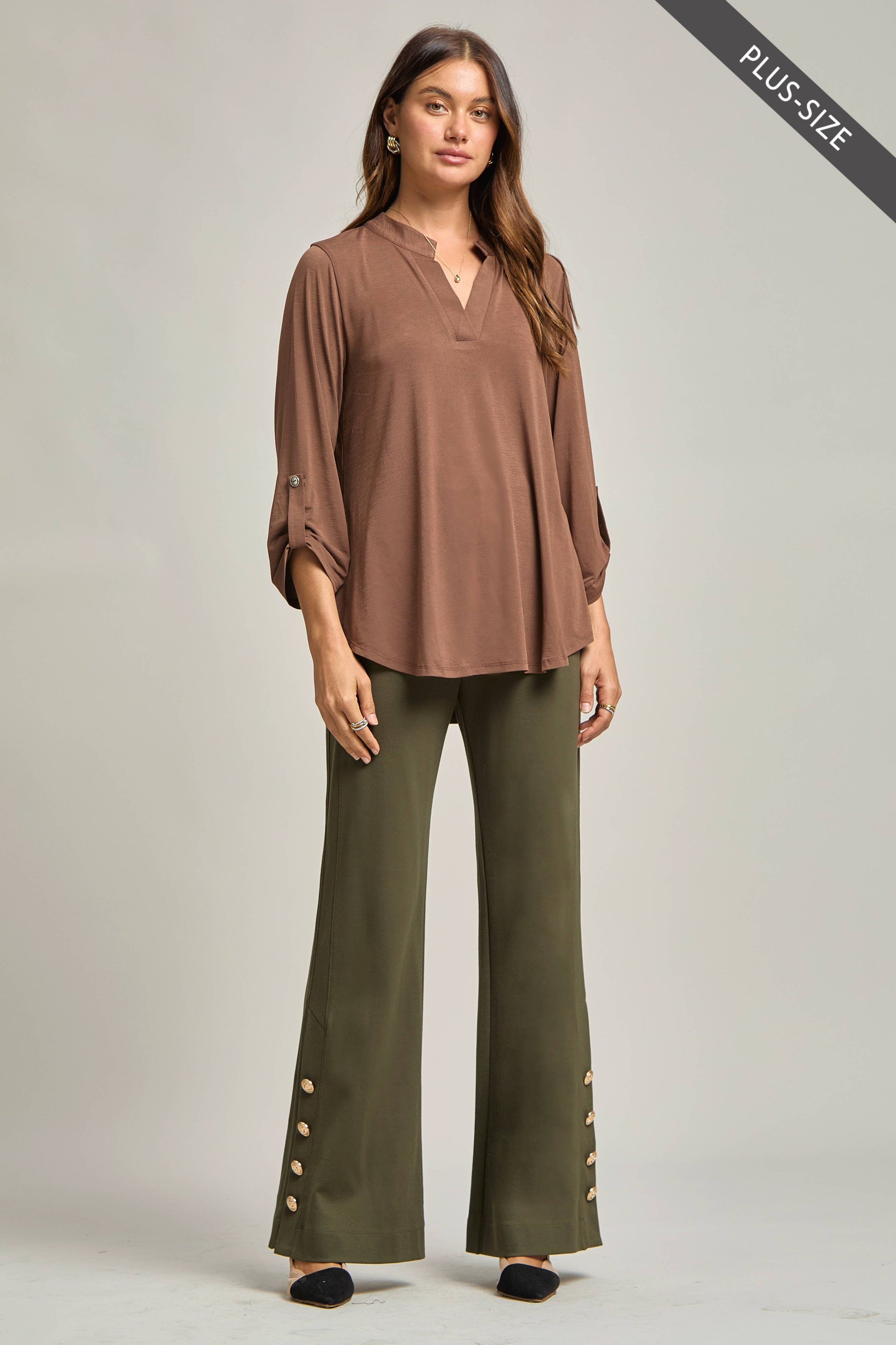 PLUS SIZE Signature Lizzy Top – Wrinkle-Free Travel Blouse with Mandarin Collar